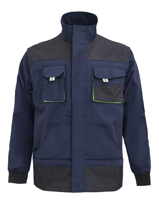 WORK IDEA Men's Work Jacket with Contrasting Reflective Stripes - Modern Design with Zip and Buttons